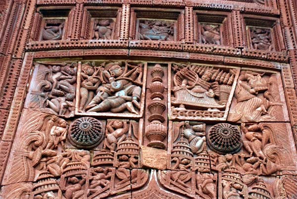 Maluti is a small temple village in Dumka district in the northeastern corner of Jharkhand on the border with West Bengal. There were, originally 108 terracotta temples of the seventeenth century. It was known as Gupta Kashi in ancient times. Mention of the place is made as far back as 185-75 B.C. in the Sunga dynasty records and tradition holds that the great horse sacrifice or Aswamedha was once upon a time practiced here by Raja Pushyamitra Sunga. Later Bajrayani Buddhists practiced Tantrik rituals in the place. The matriarchal deity Mauluiksha-ma is worshipped here giving Maluti its name. It is said that Adi Shankaracharya came here and from here began the Vedic upheaval against the Buddhists and that even today the Dandiswami of Varanasi’s Sumeru Math comes here regularly on an annual pilgrimage |